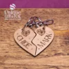 Introducing Our absolutely stunning Personalised Couples Heart Keyring, a rustic wooden engraved Custom Couples Heart Keyrings. These are beautifully engraved wood keyrings for couples, together they make a complete heart, just like the couple, complete as one.